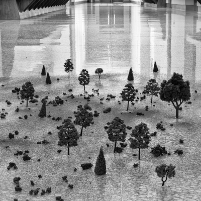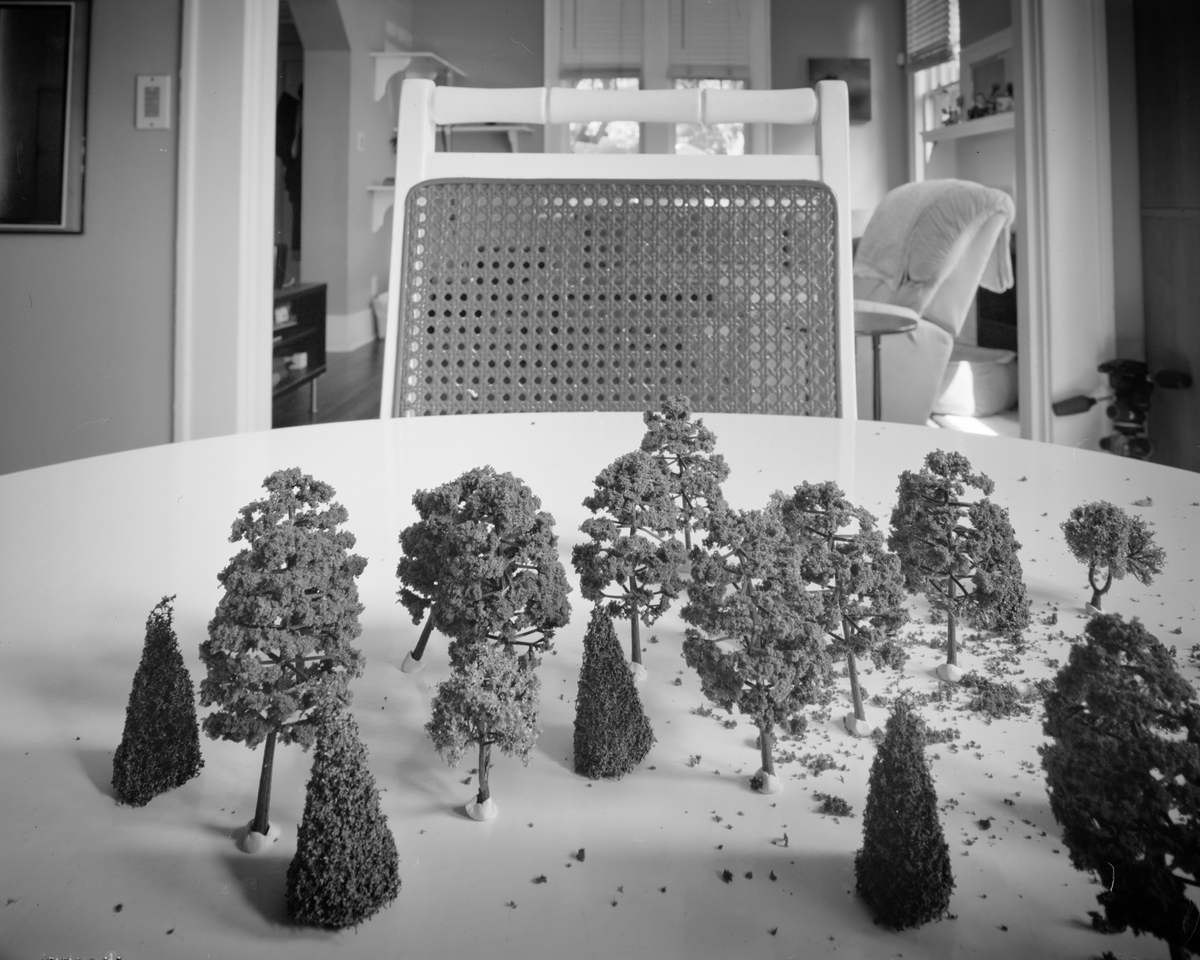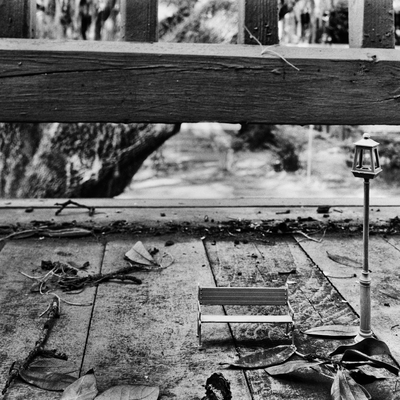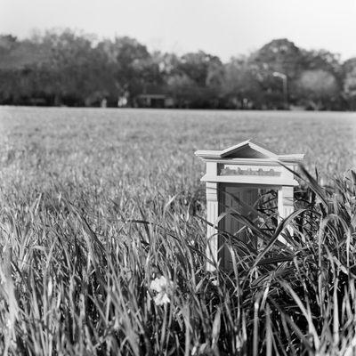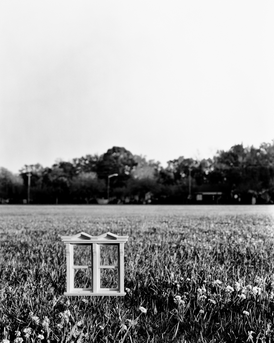 The photographs that comprise Imaginary Views originated with images of dollhouse miniatures—doors, staircases, and windows—set against examples of Southern vernacular architecture. These play objects inhabit spaces of presumed safety, allowing the viewer’s imagination to unfold freely. The work invites the viewer to imagine a world reduced to one-twelfth the scale of our own, in which a staircase landing might become a tree-lined avenue.